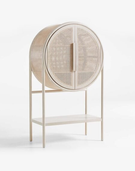 Whitewash Cane Bar Cabinet